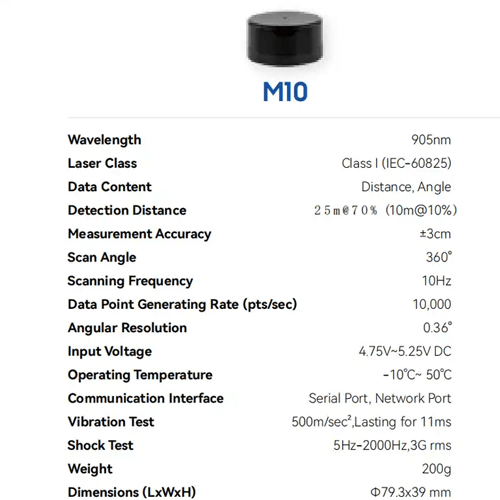 360° Lidar Sensor, 10 Hz Scan, 82ft Range, ±3cm Accuracy, 95nm Wave – Asset Track Pro