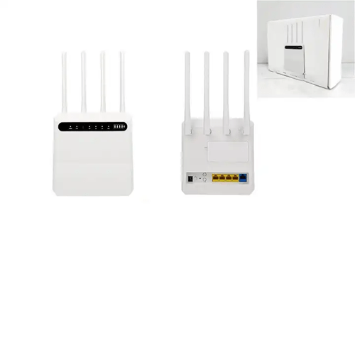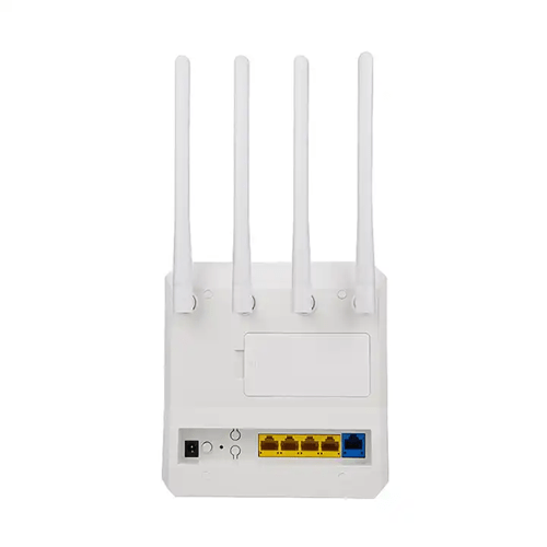 4G LTE modem with built-in 4000mAh battery, 300 Mbps speed, and support for up to 32 Wi-Fi users. Includes 4 external antennas and RJ45 ports.