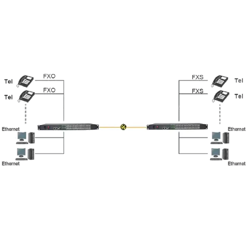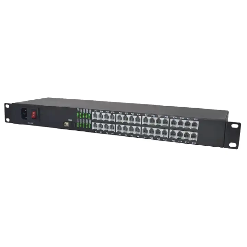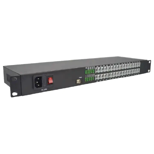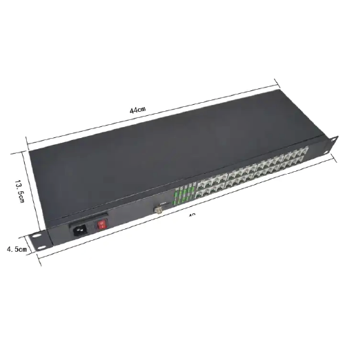 | Product Description | Transmit 32 ways telephone (RJ11) +2 ways Gigabit Ethernet over optical fiber, 19 in rack type, AC 220 V power supply |
