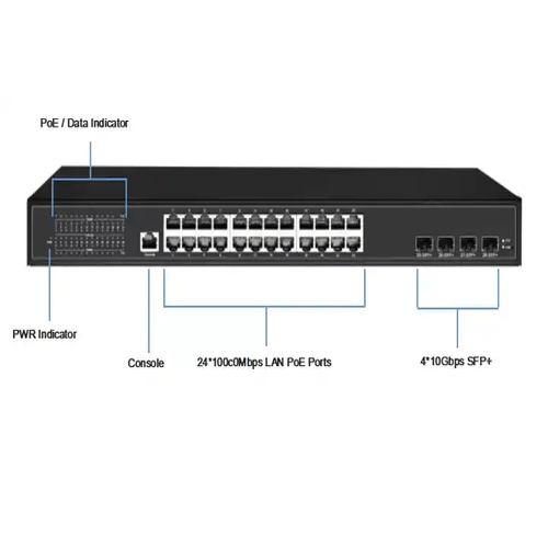 Asset Track Pro gigabit optical fiber network switches are L2 Non-traffic Ethernet switches using BCM standard chipsets. They provide 24 ports of 10 or 100 or 1000 Mbps auto-negotiation Ethernet ports and 4 x 10Gb fiber SFP uplink ports, high integration designs, small and exquisite, portable, suitable for medium and small offices and home networks. Using store-and-forward technology, combined with dynamic memory allocation, ensures allocation to each port effectively. Their wire-speed switching that forwards packets can be as fast as the speed that your network delivers those packets to them.