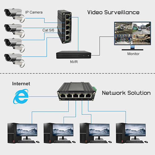 - 5 ports supporting 10 / 100 / 1000 BASE-T RJ45 with auto-MDI / MDI-X function