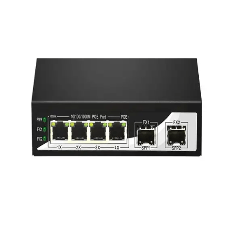 | Connector Type | 4 x 10 / 100 / 1000 M copper cable RJ45 ports (4 PoE ports + 2 Uplink SFP port) |