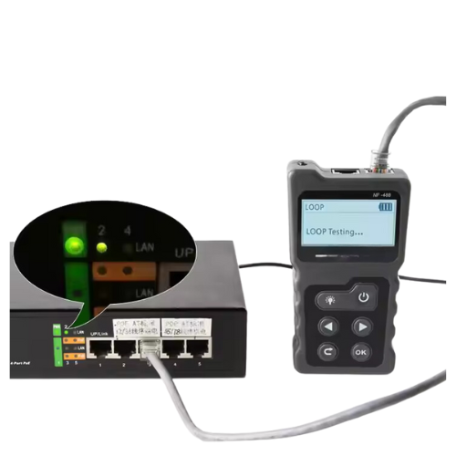 Explore the Cable Tester and PoE Checker, a compact device for testing cables and PoE environments. CE certified for reliability and performance.
