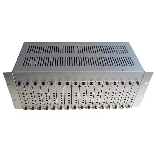 Asset Track Pro digital analog TV converter modulator with easy setup is a space saving, fixed channel modulator sysetm. It consists of 16 individual, vertically mounted, fixed frequency modulators and an efficient switching type power supply module. It is designed for 19 in rack mounting. Each modulator is SAW filtered and is factory set to the desired channel and proper offset. Precise frequency is maintained with PLL circuitry. It offers excellent video performance and high reliability in 4U rack.