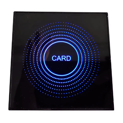 ISM 125 KHZ RFID reader: ISO14443A protocol, versatile interface options, wall-mountable, for secure door access control.