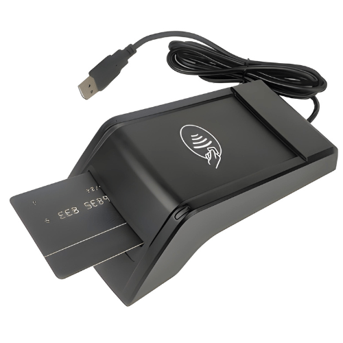 USB-powered RFID proximity reader for 13.56 MHz cards. Supports card sizes up to 85.9mm x 54.18mm with a <200 mA working current.
